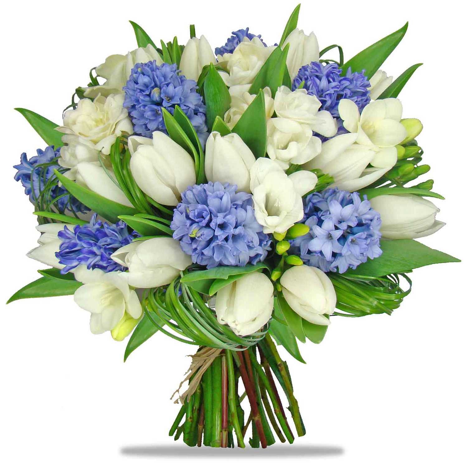 Tato elegantní kytice je harmonickou kombinací bílých a modrých květin, které spolu vytvářejí svěží a jemně decentní dojem. Tulipány a hyacinty v chladivých tónech se nádherně prolínají s bílými fréziemi, společně působí uklidňujícím a zároveň slavnostním dojmem. Tento jemný aranžmán je ideální volbou pro blahopřání, poděkování, nebo jako stylové překvapení do moderního interiéru. Kytici vážeme s citem pro detail, naše zručné floristy dbají na každý prvek. Doručíme vám ji v den objednávky během pracovních dnů, s možností objednání přesného času doručení. Vaši jistotu podtrhne potvrzení o doručení e-mailem.